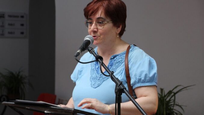 Seguidamente, fueron pasando por el atril los catorce alumnos y alumnas del Taller Literario. Ante un decorado bellamente engalanado, cada uno, leyó el texto que había elaborado para la ocasión, donde demostraron todo lo aprendido en el curso, además de la originalidad que plasmaron en sus composiciones. Al concluir las lecturas, María José Santos, una de las responsables de la UP, intervino para poner en valor esta actividad. En su discurso, también tuvo unas cariñosas palabras para Mariola Díaz-Cano, destacando su dedicación y compromiso durante su etapa en el centro.